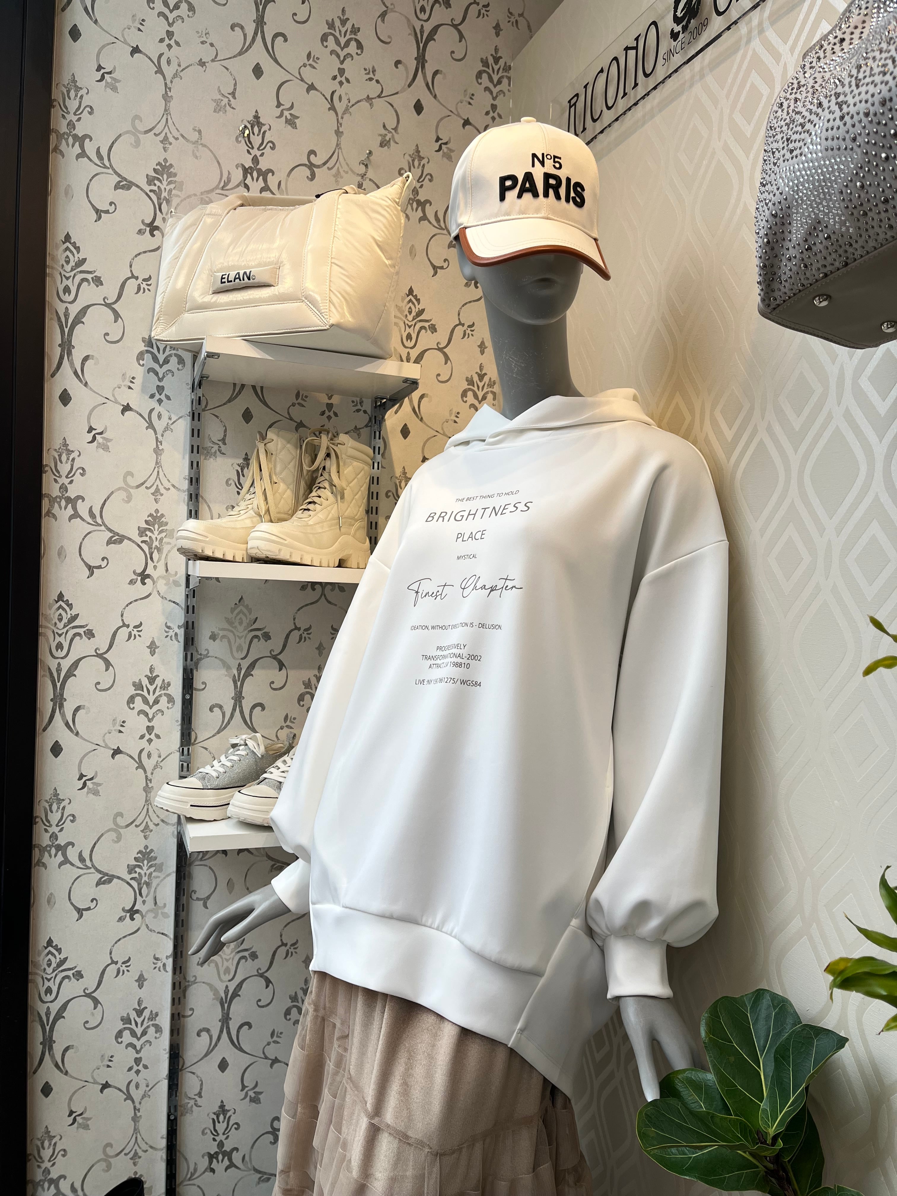 フードの立体感が、冬のバックスタイルを洗練されたスタイリングにしてくれます。