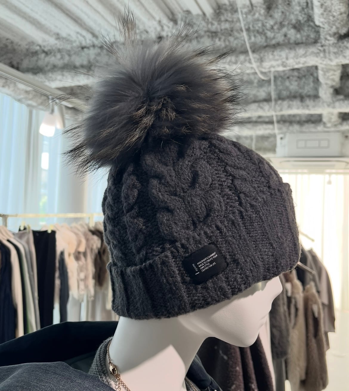 ayaneラクーンボンボンニット帽(NO875822)18(チャコール)