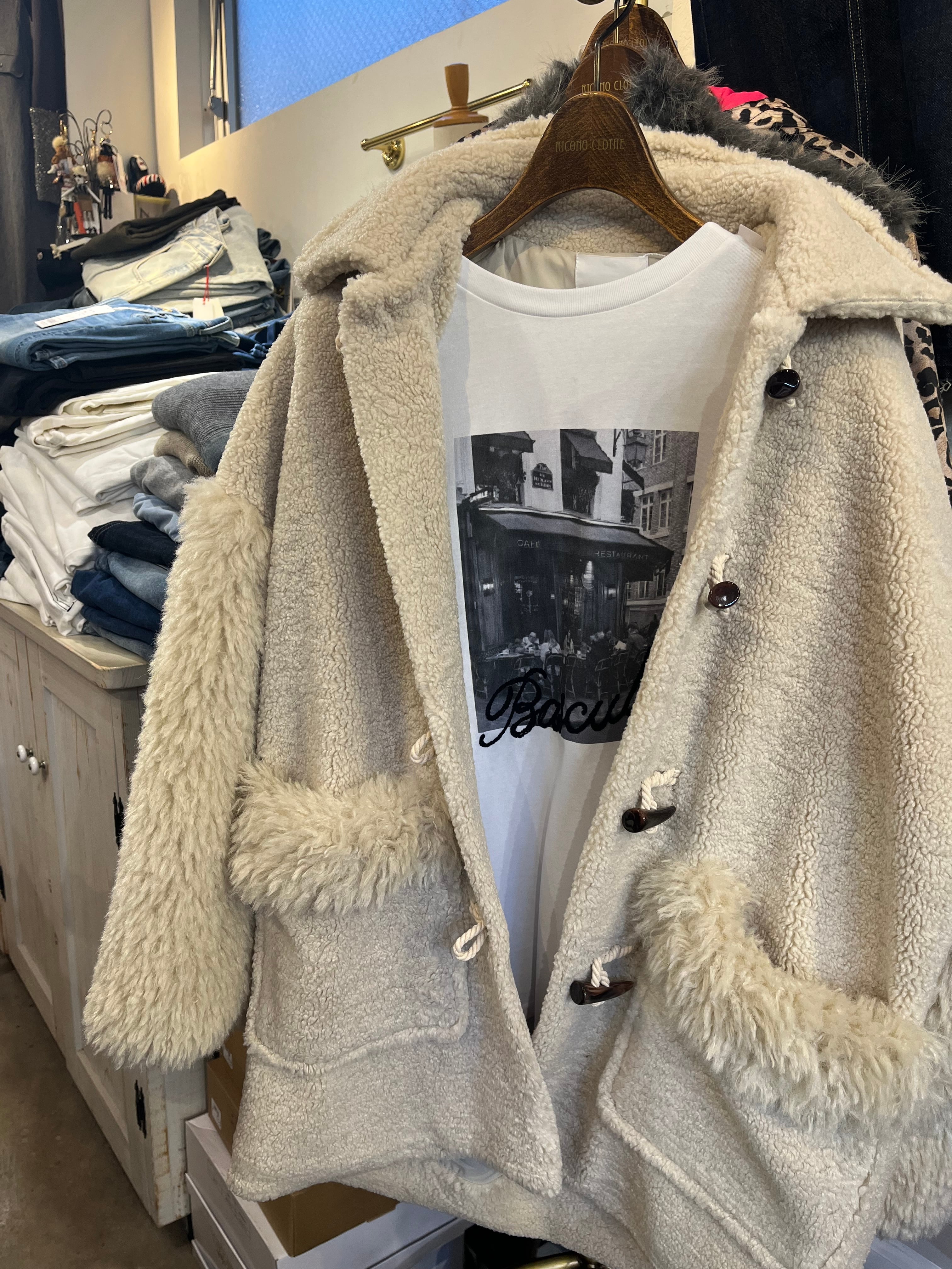 毛足の異なる2種類のボアを合わせたミドルコート
