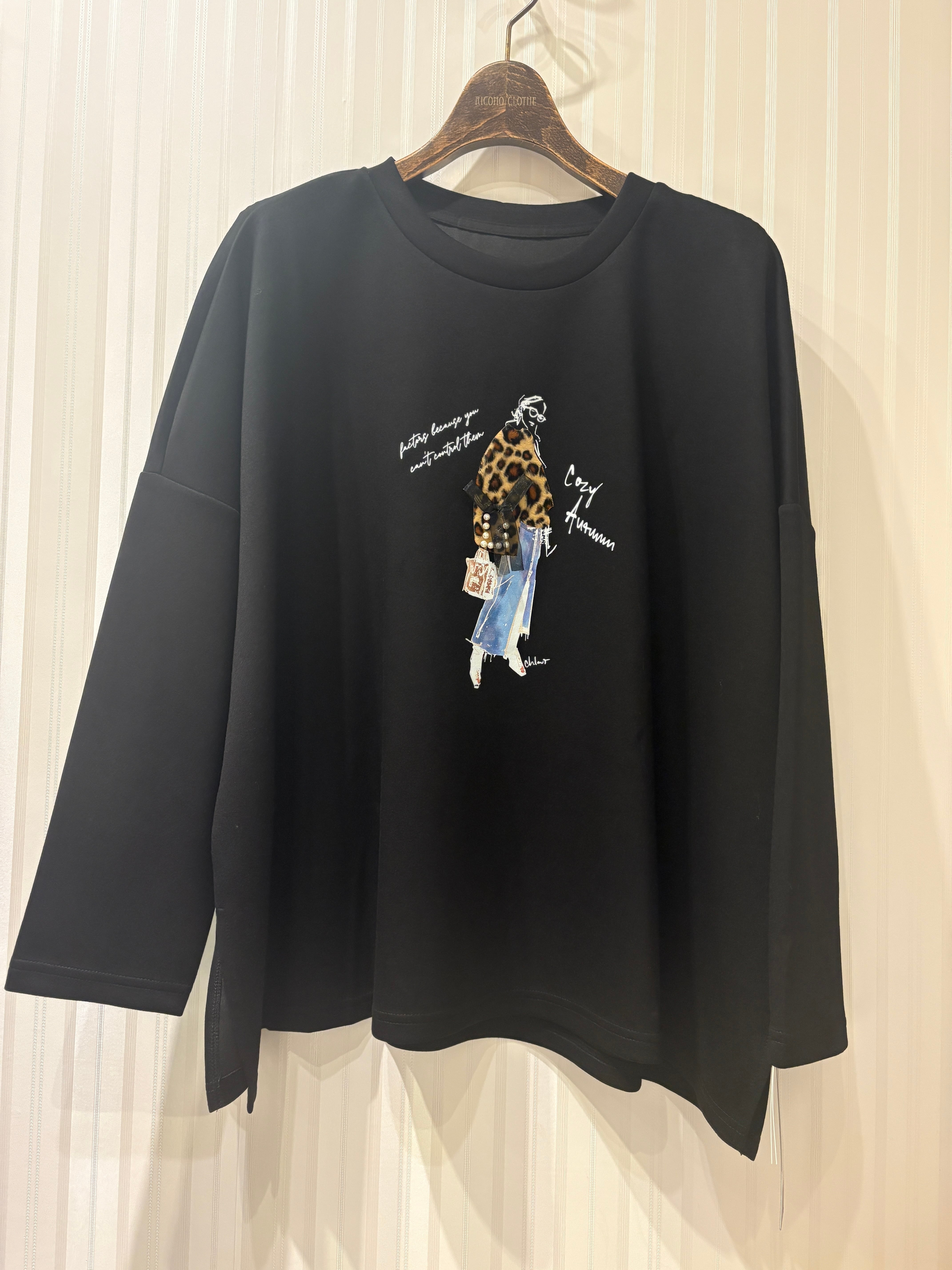 女の子モチーフが可愛くパンツにもスカートにも合わせやすい。
