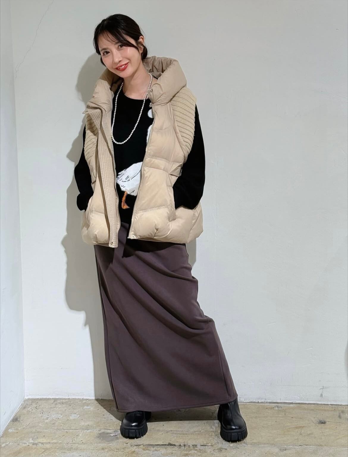 バックシルエットのトップスと合わせると、旬のコーデが出来ます。
