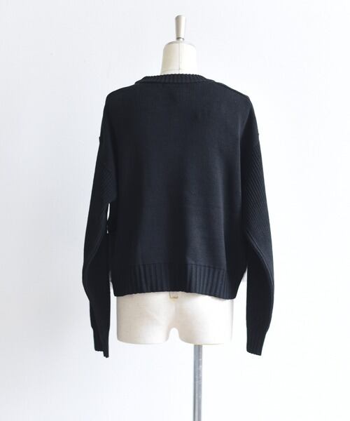 本体はコットンライクな糸で仕上げシーズンレスで着用いただけるニットです。