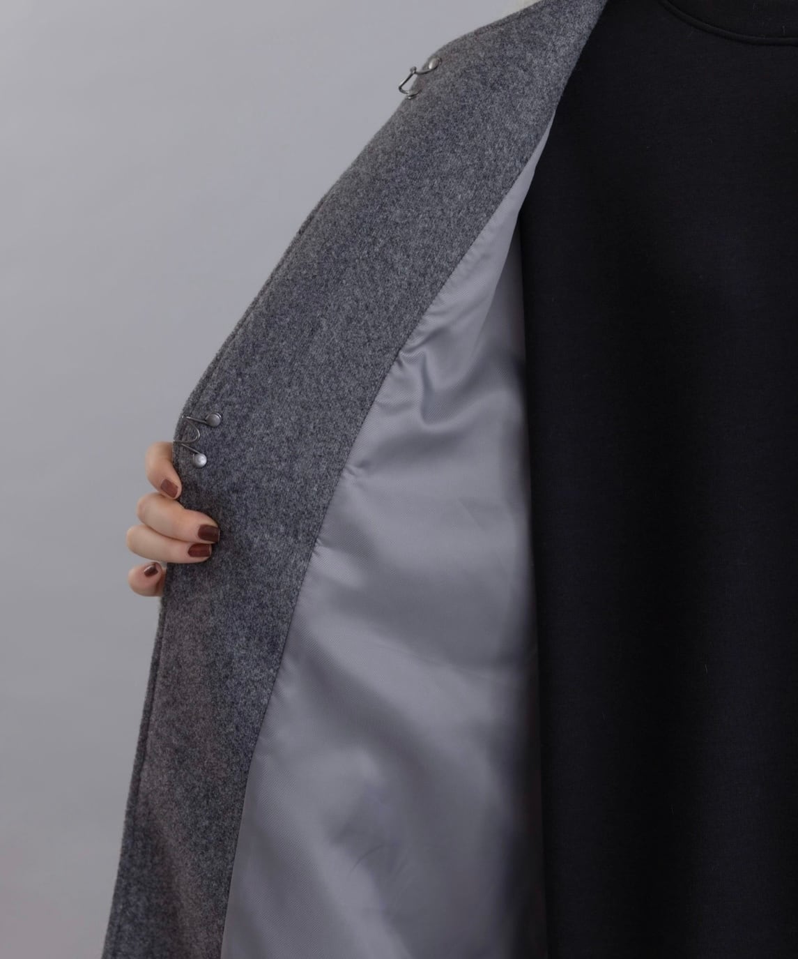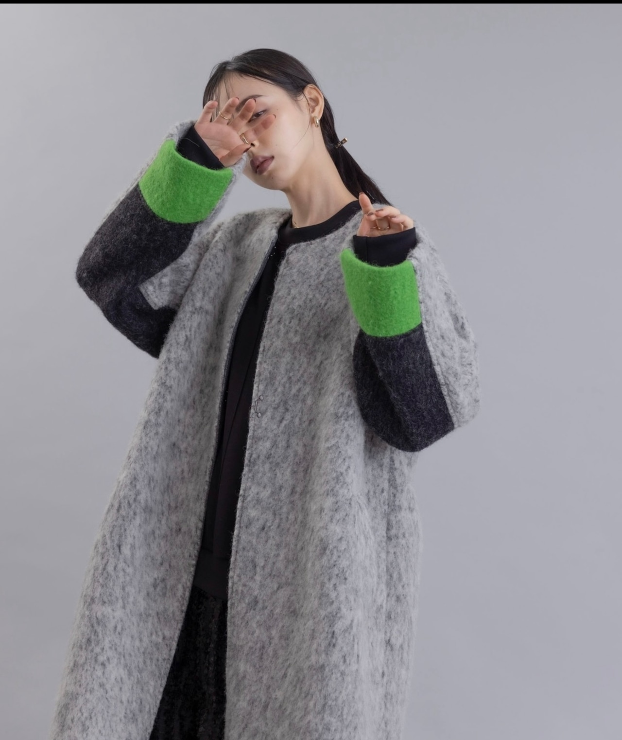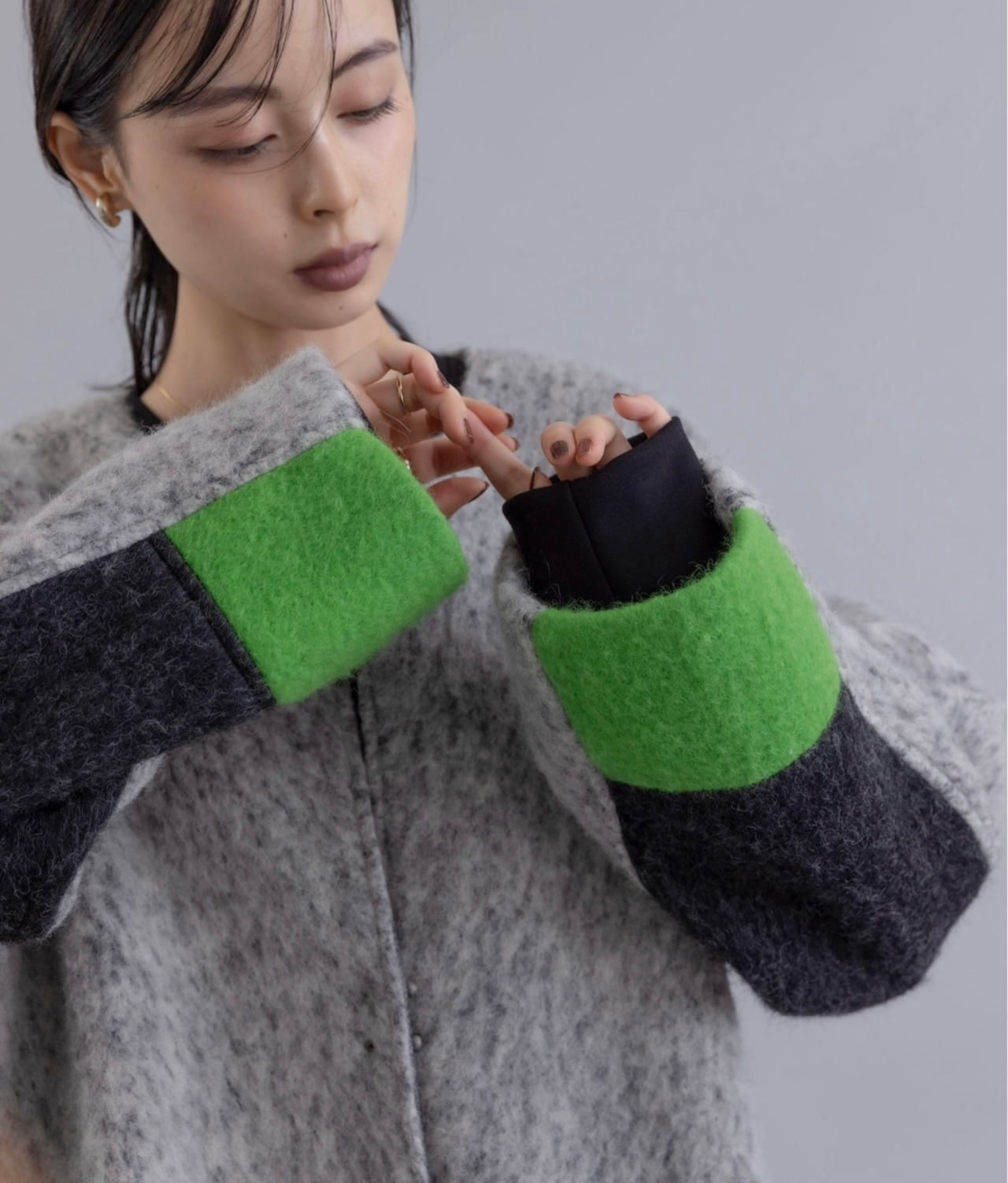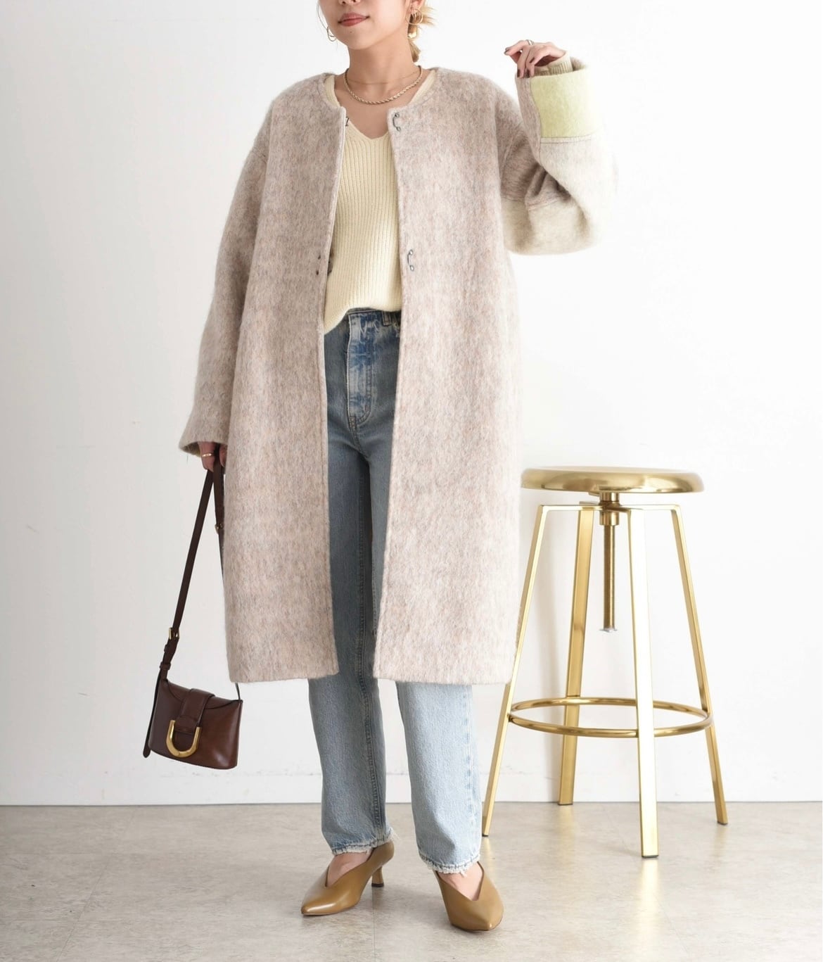 MIXCOLORの毛足ある素材が魅力的なウール混のコート。