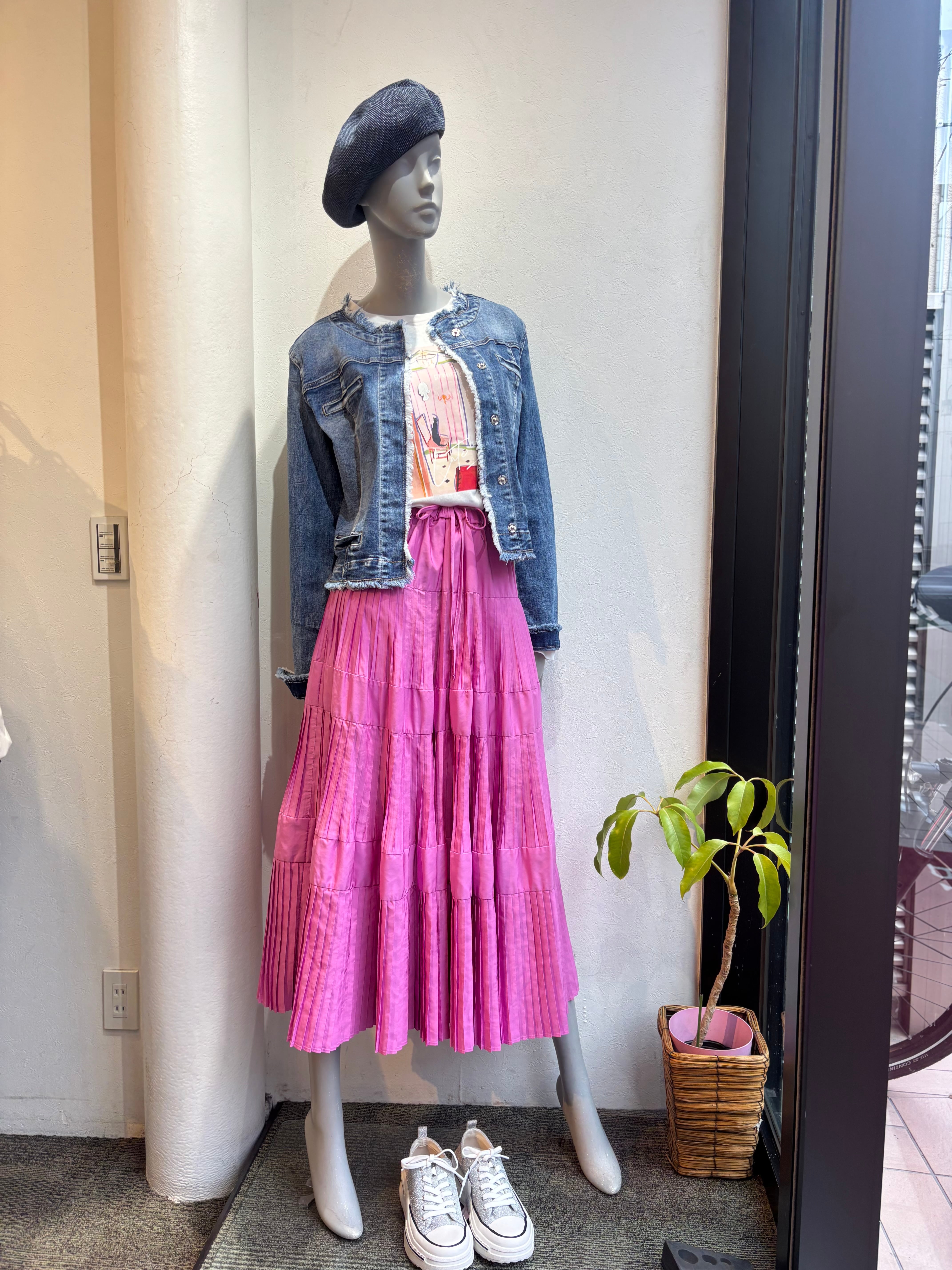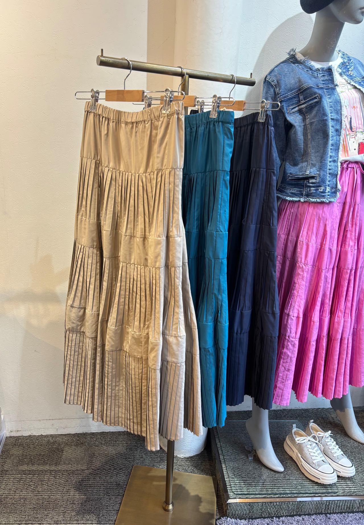 プリーツとティアードをあしらった、大変凝ったデザインのスカートです。