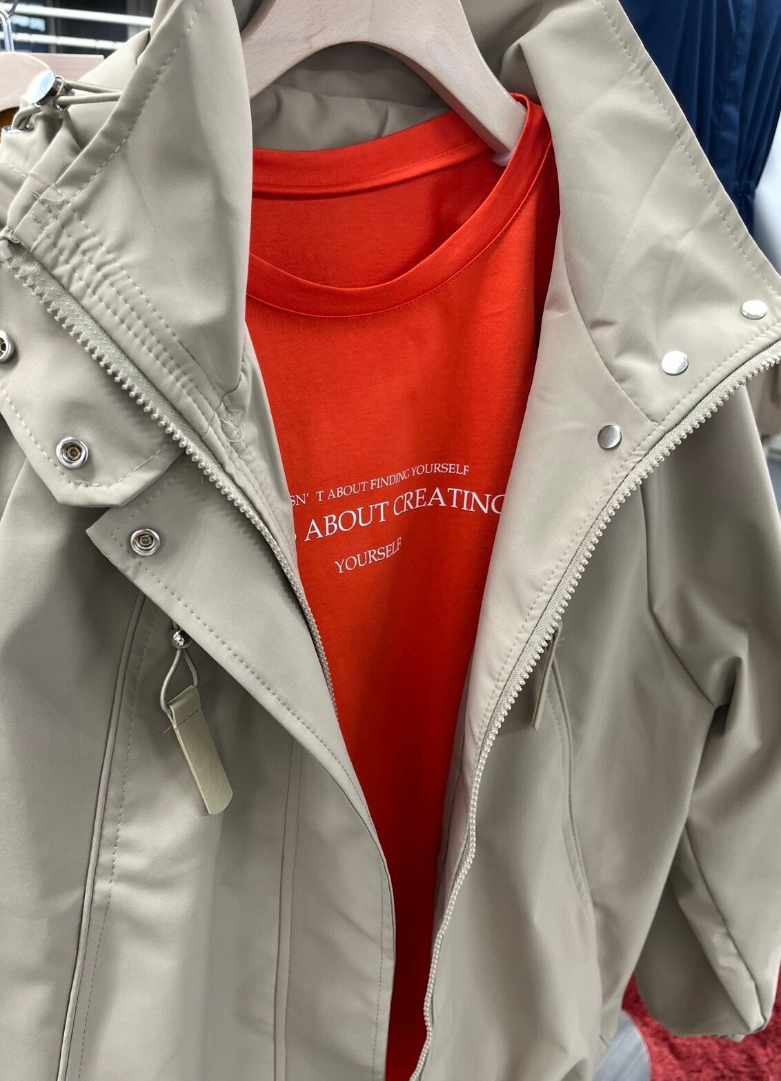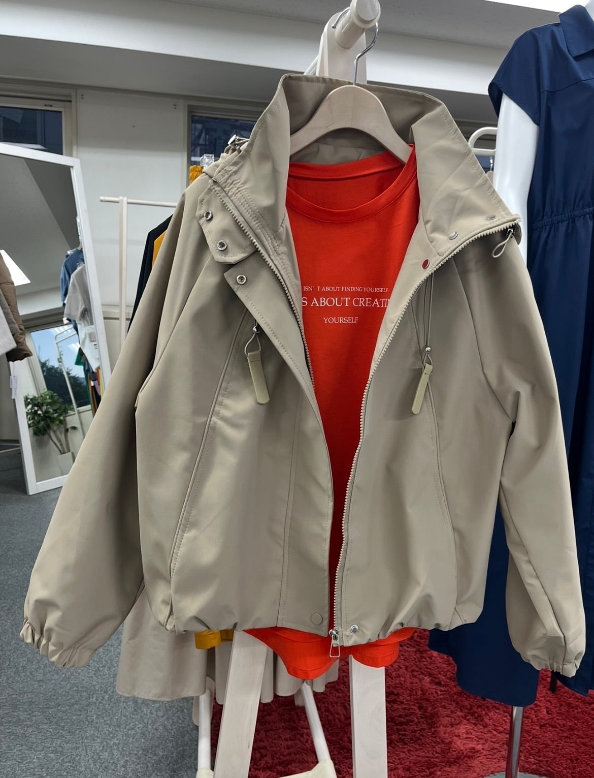 フードとお裾がドロスト仕様になっているので