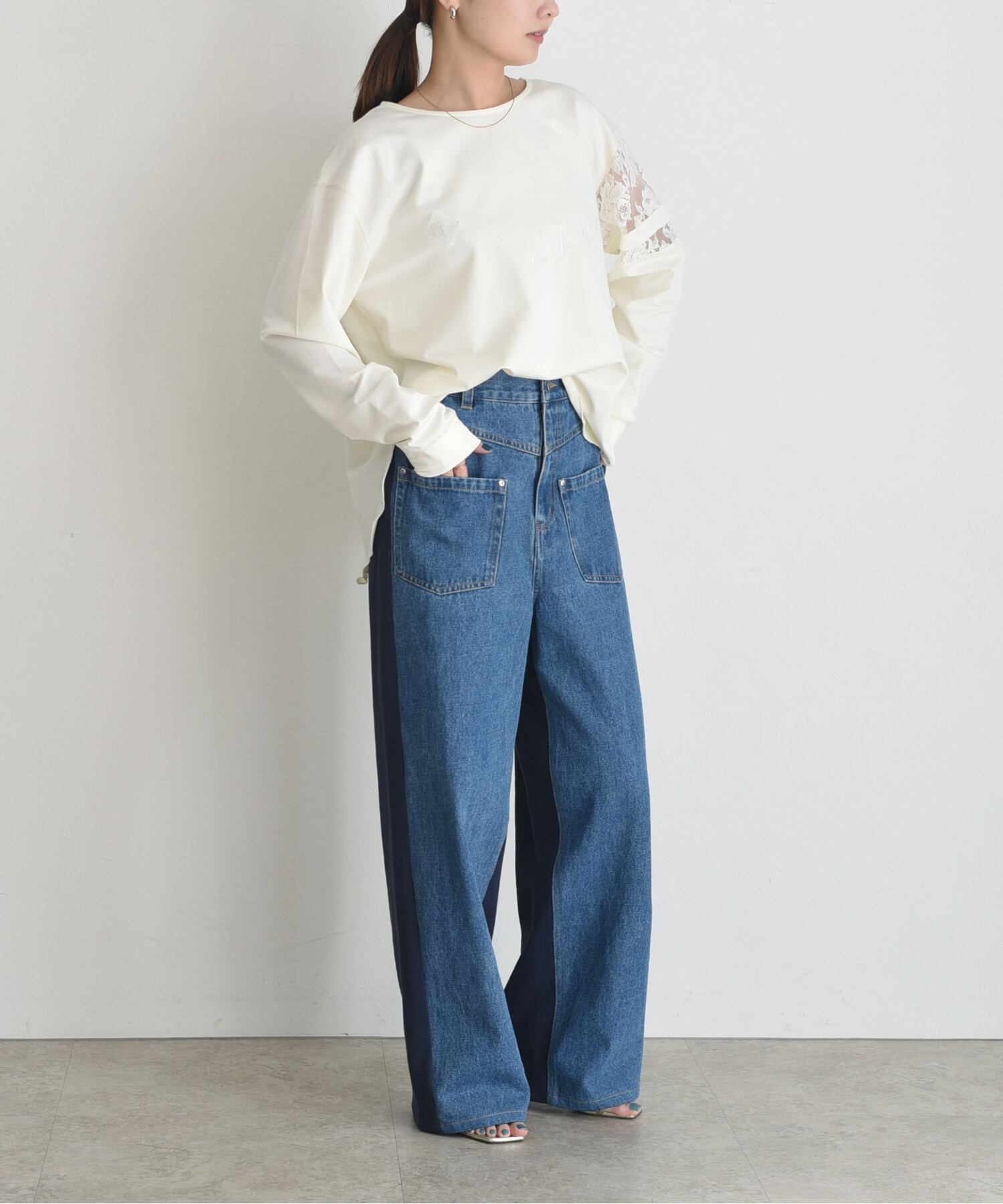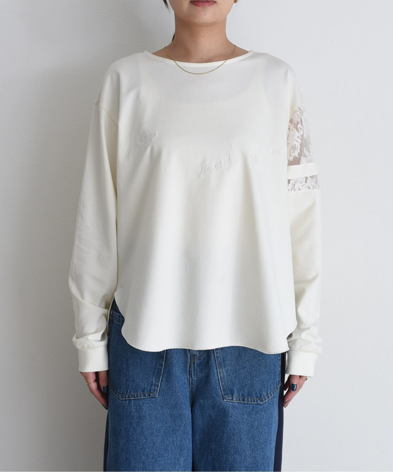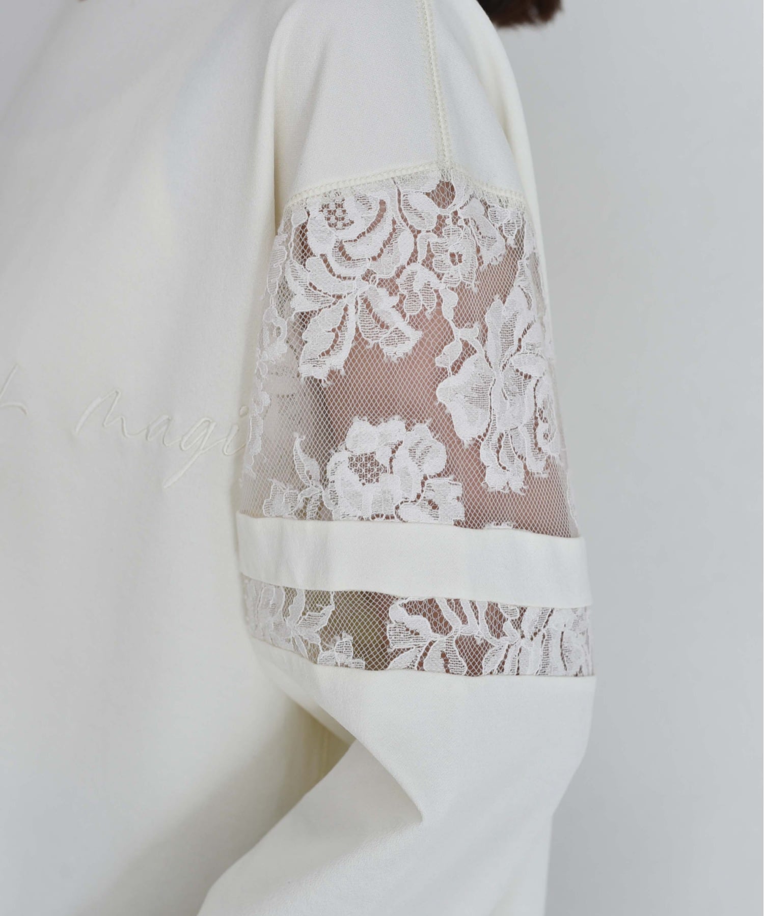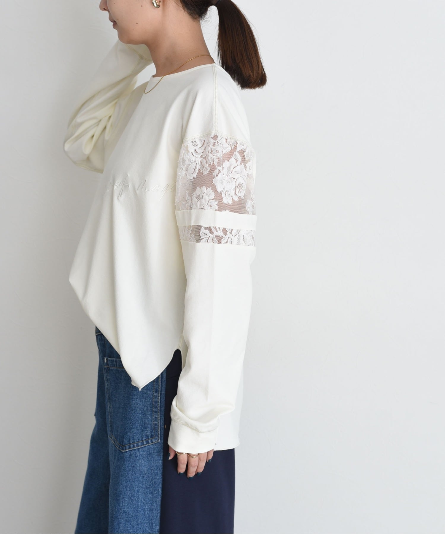 Eimee Law スリーブレース テキスト刺繍ラウンドヘムトップス ¥9,790(税込)