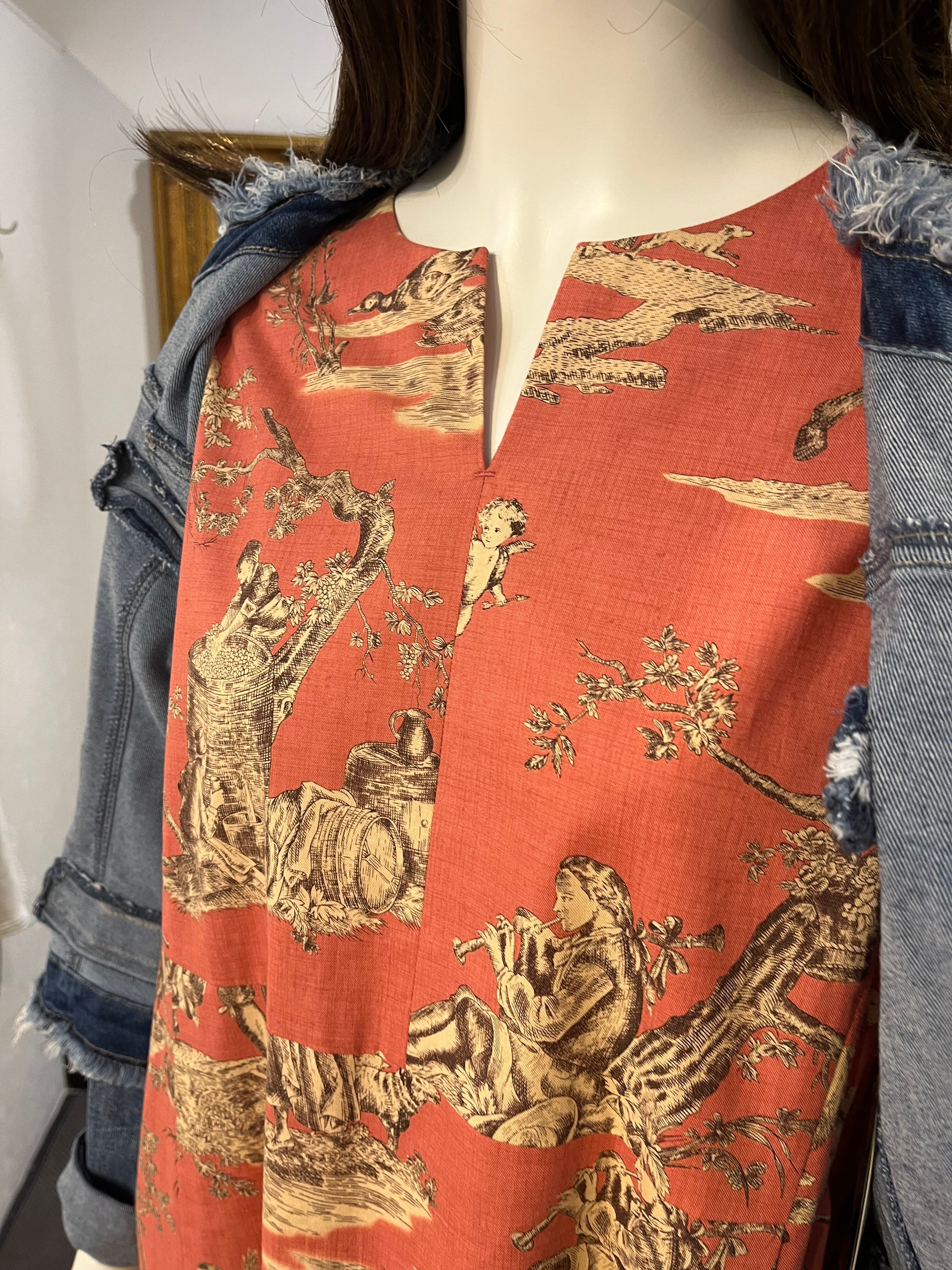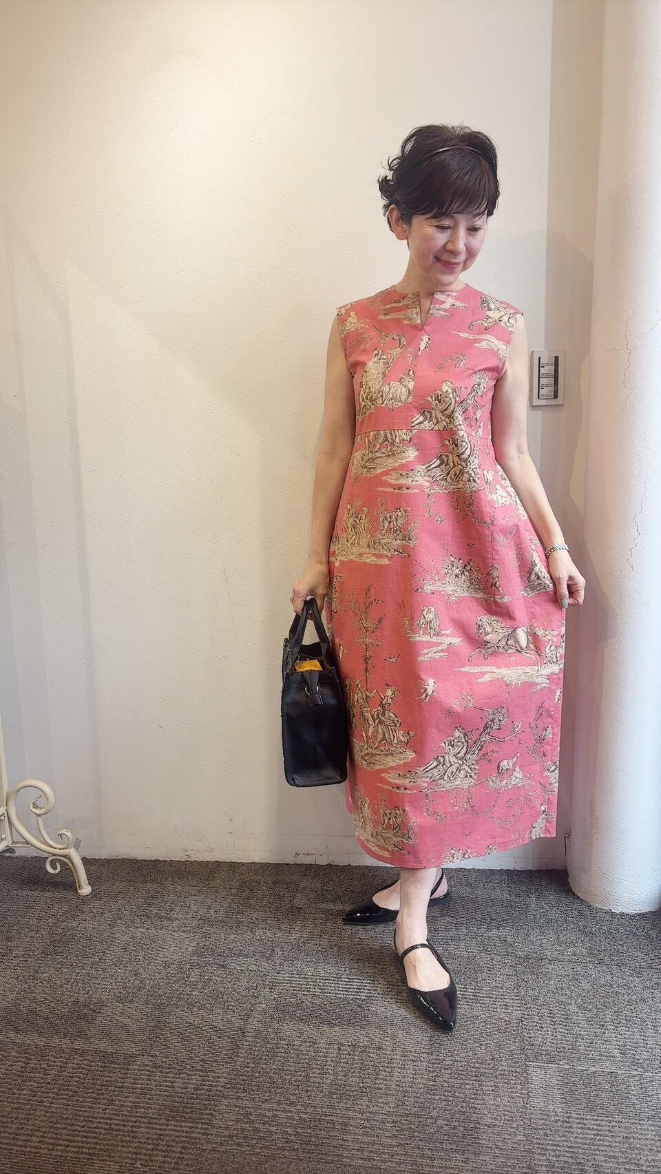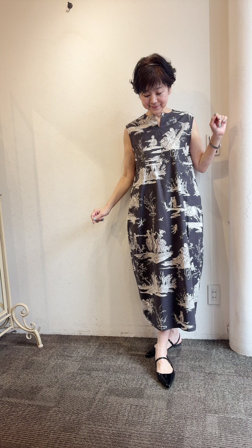 アートな風景画のコットンプリントワンピース。めちゃオシャレで、真夏もサラサラっと快適な着心地です。