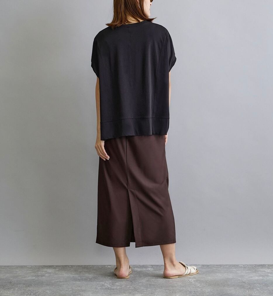 腰回りをカバーしてくれるので、夏もサラッと着痩せが叶う。