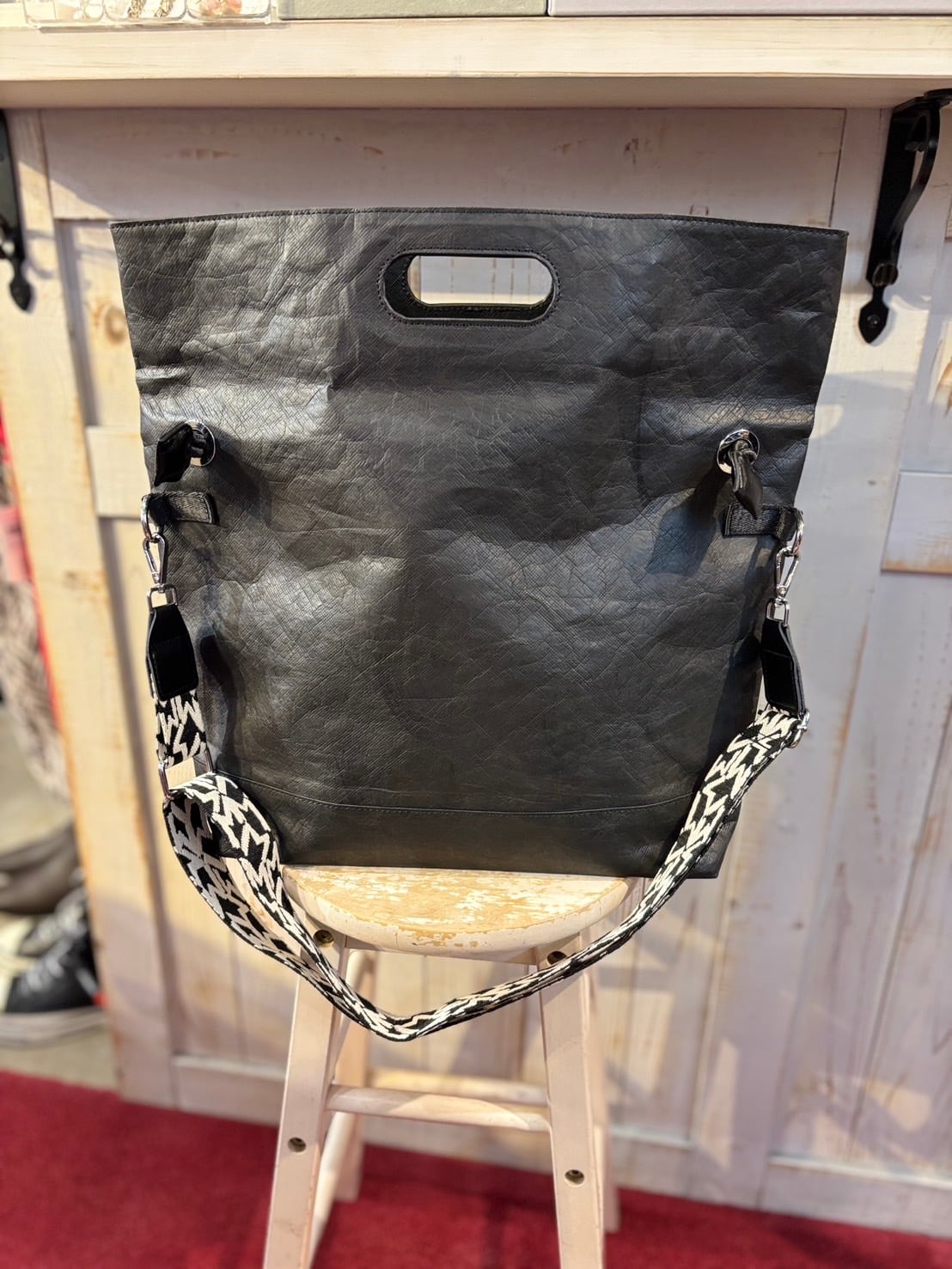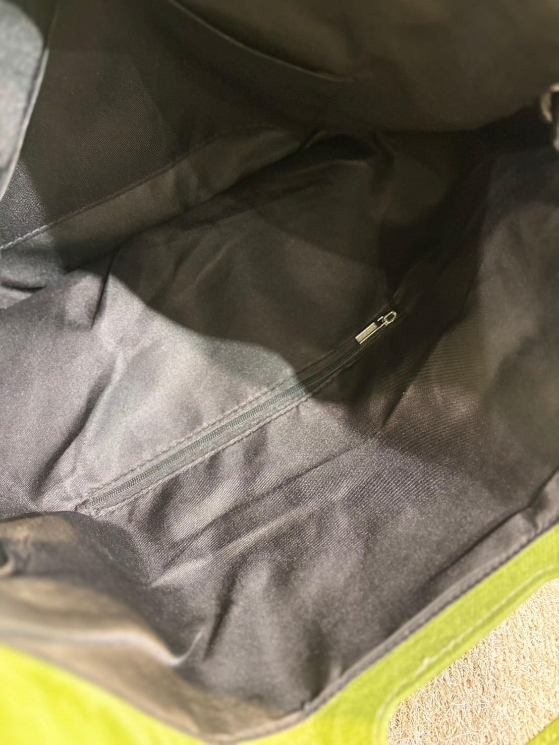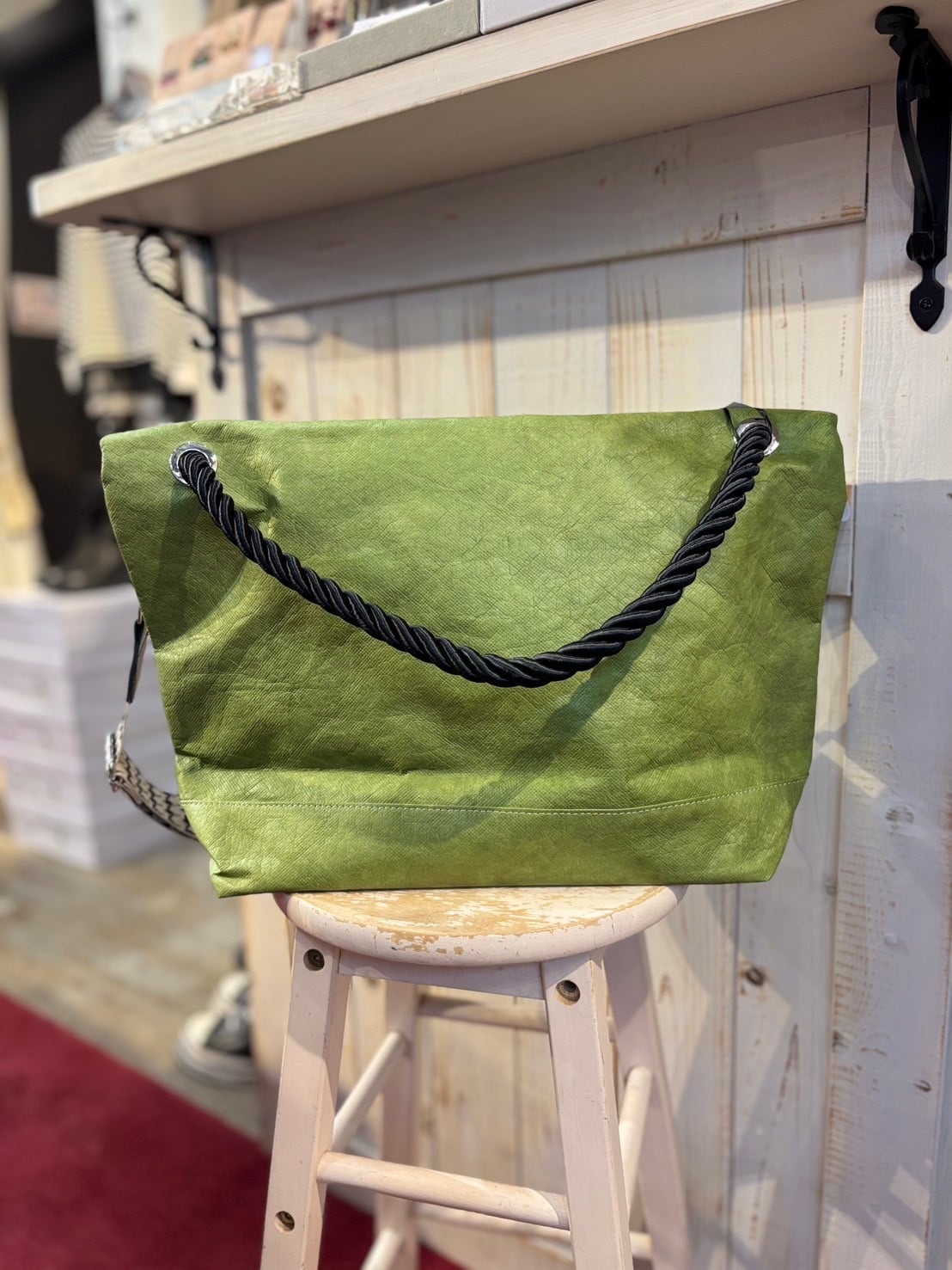 表財はシボ加工の強化ペーパー素材。内側には、ポリエステルの裏張りをした、しっかりした作りのバックです。