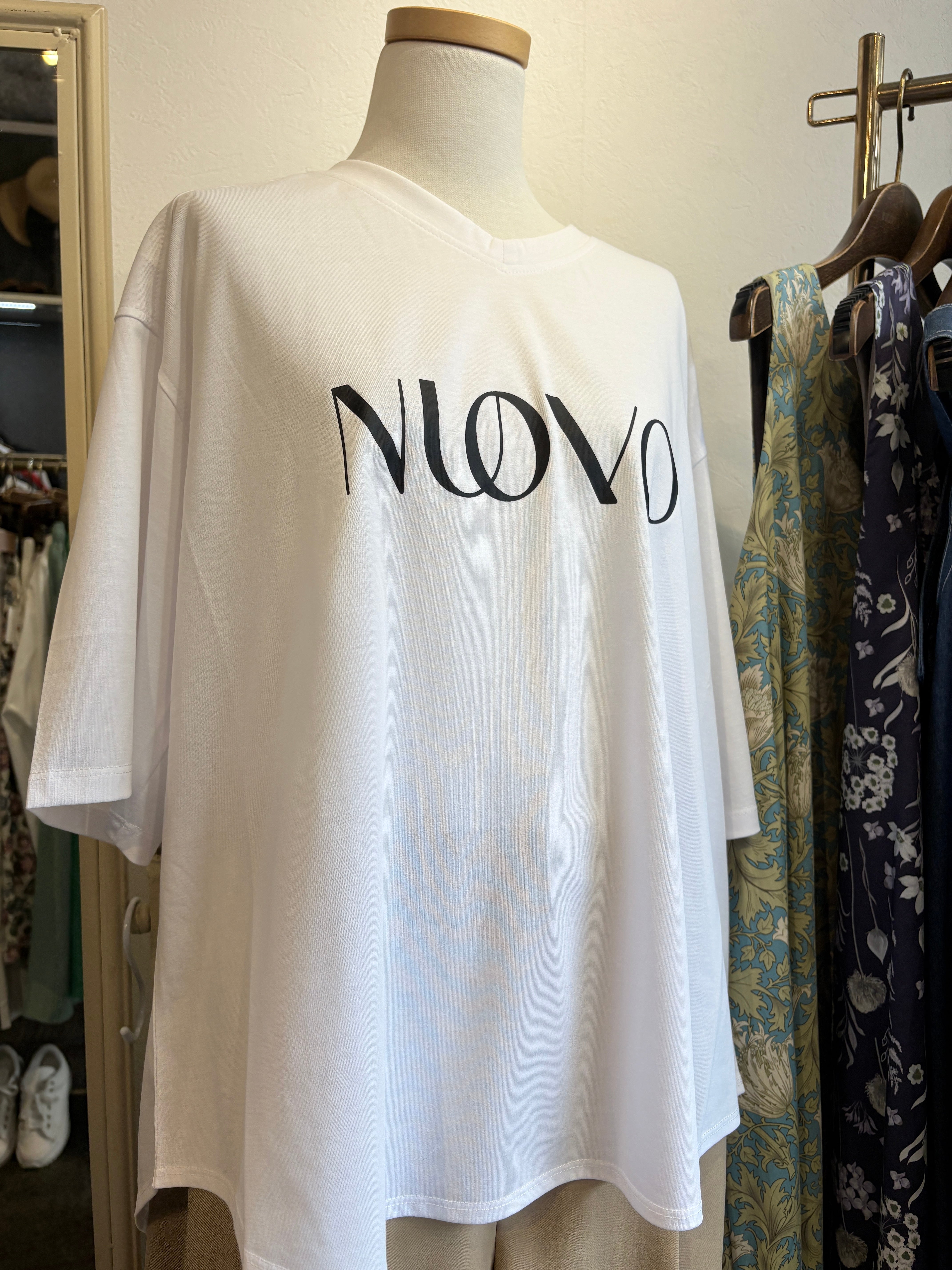 開きすぎない絶妙なVラインで、デコルテはきれいに見せつつ安心感のあるTシャツ❤️