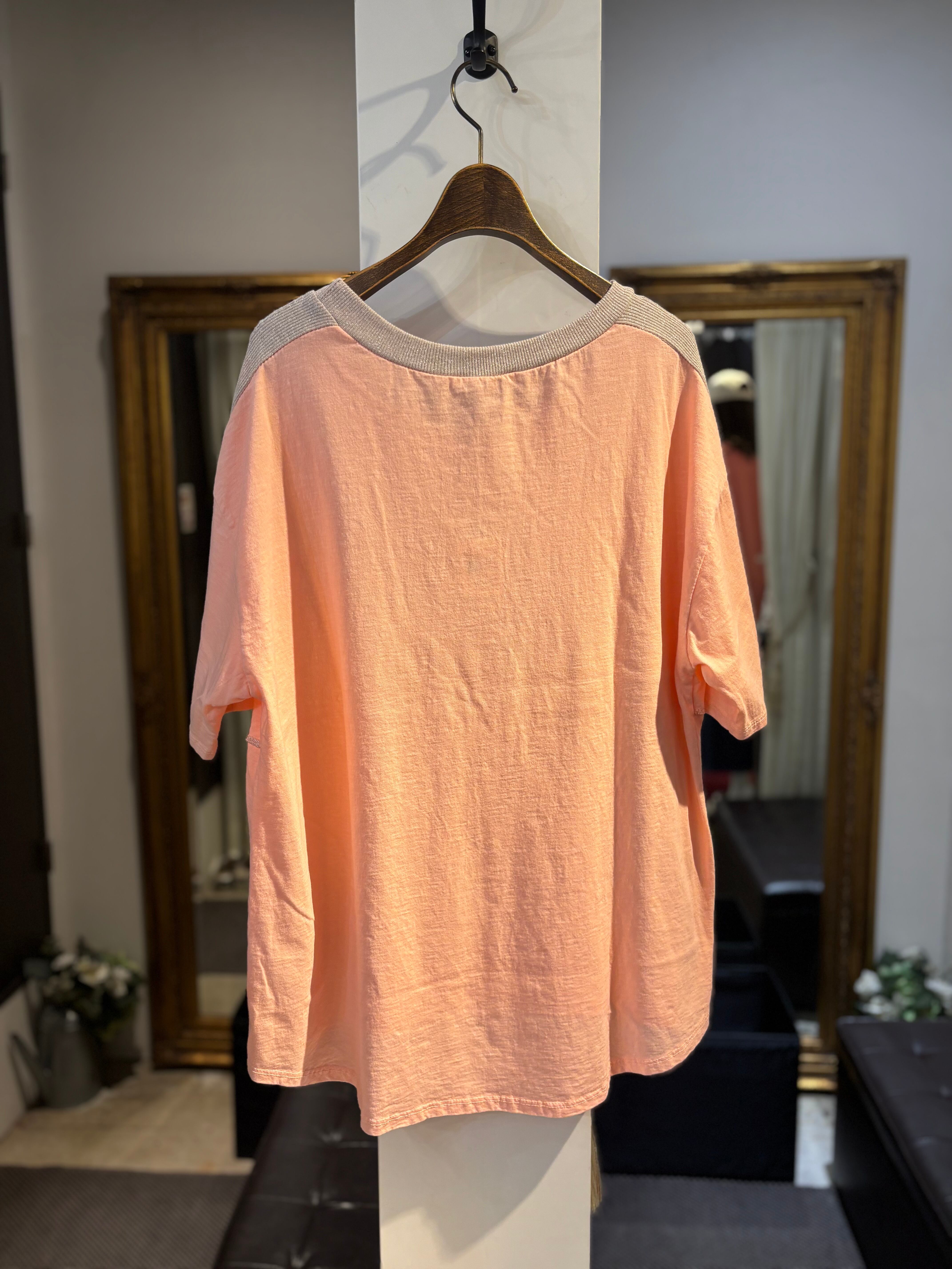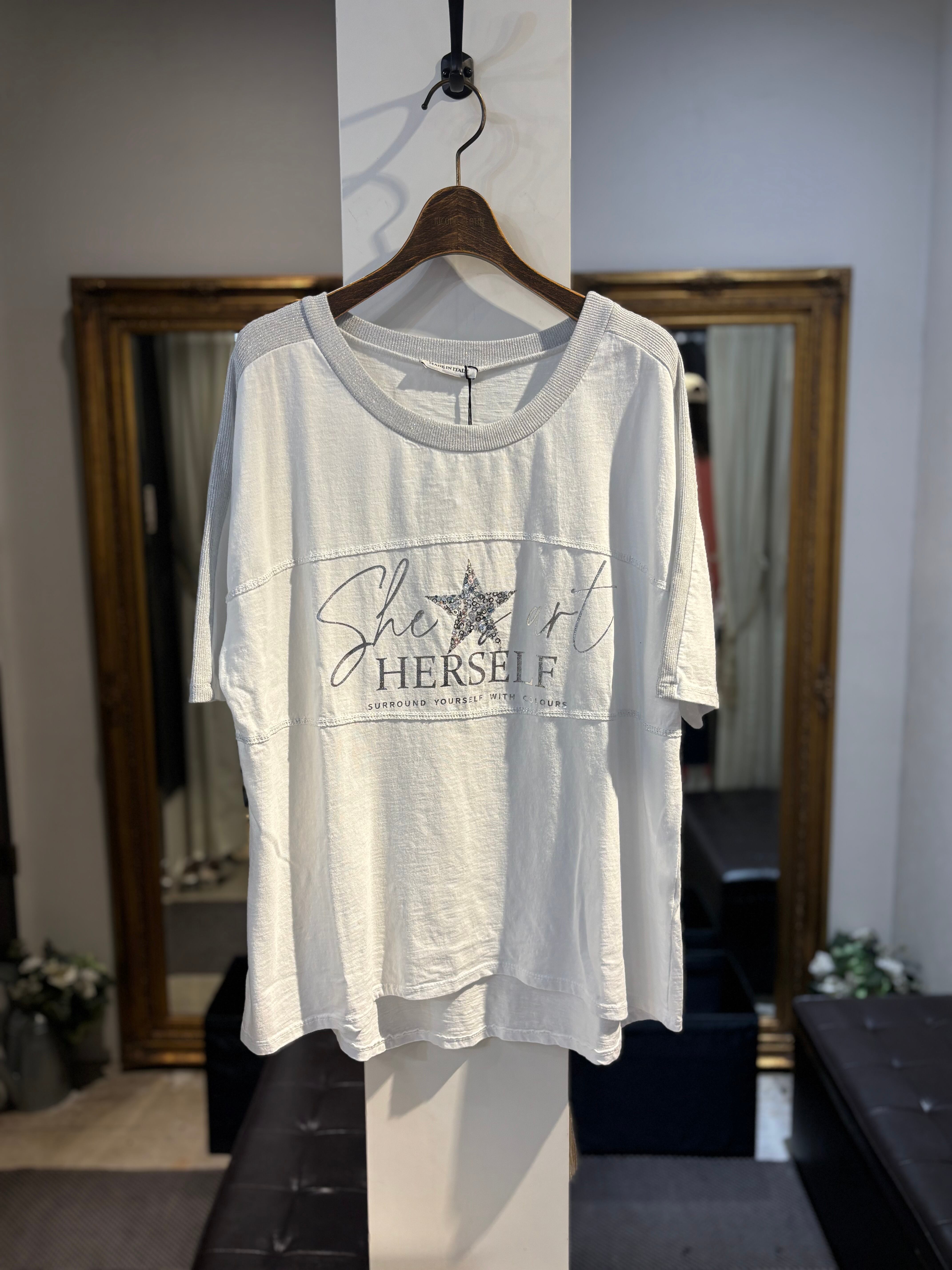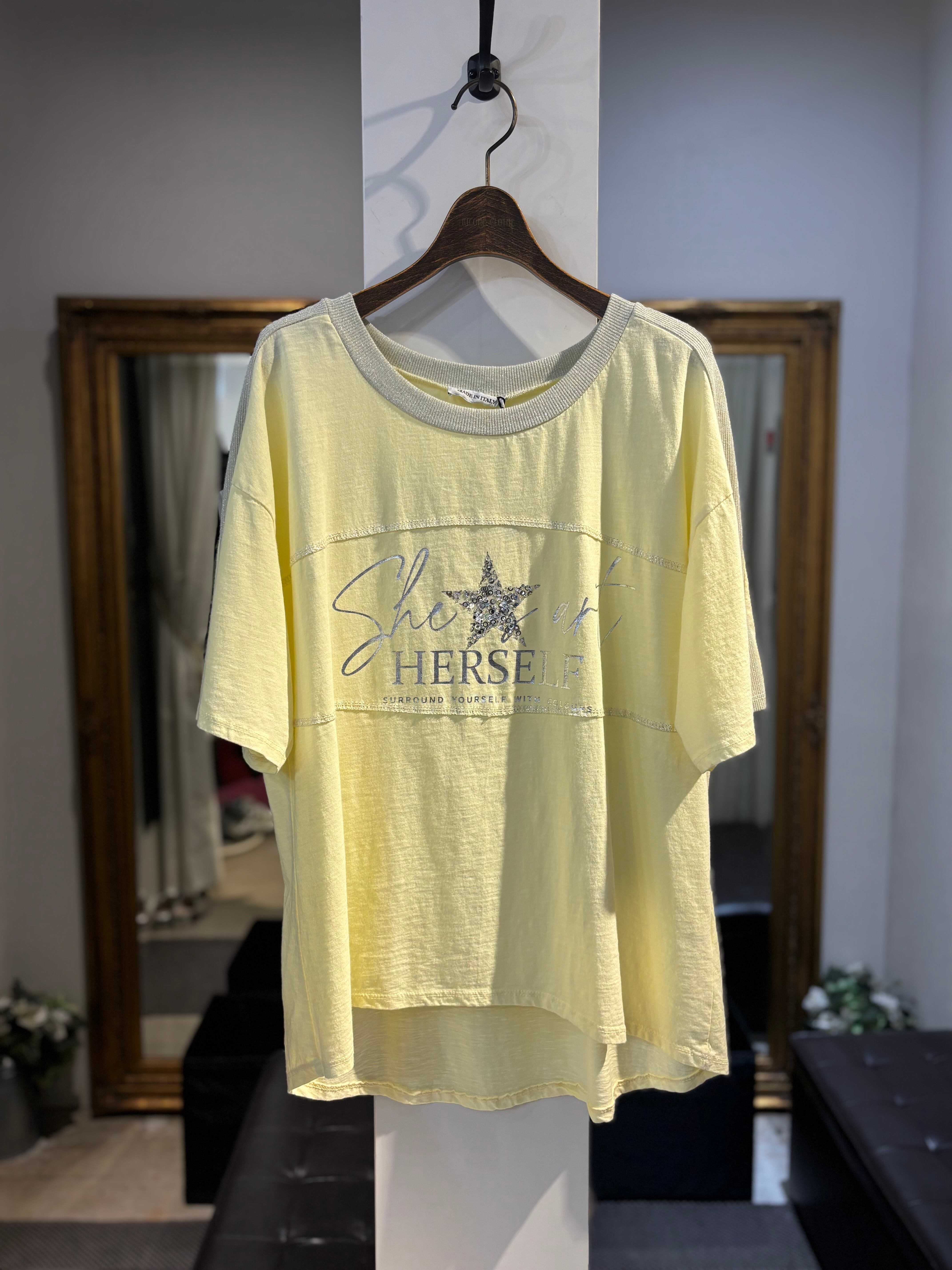 大きなロゴとキラキラした星モチーフが施された、オーバーサイズでリラックス感のあるデザインのイタリアインポートTシャツです。